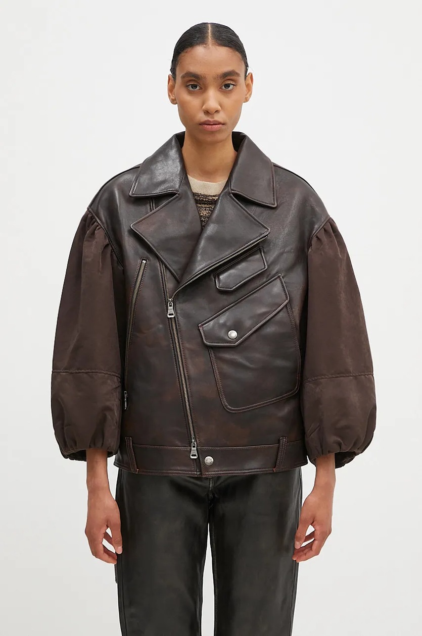 Leather jacket puff sleeve online